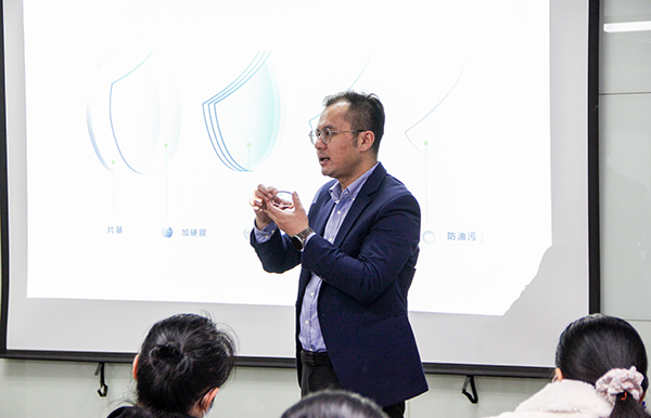 雅瑞金牌培訓(xùn)師蔣偉在和益總部介紹暴龍鏡片